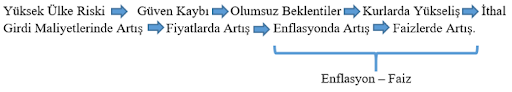 Bizim tartıştığımız bölüm sadece bu en sondaki Enflasyon – Faiz meselesidir. O nedenle de kalıcı çözüm üretemiyoruz. Kalıcı çözüm üretebilmemiz için en baştan ülke riskindeki yüksekliği nasıl giderebileceğimizden başlamamız gerekiyor. Onun da ucu yapısal reformlara dayanınca hepsini atlayarak yine en sondaki ilişkiye gelip çözümsüz kalıyoruz: Enflasyon – Faiz