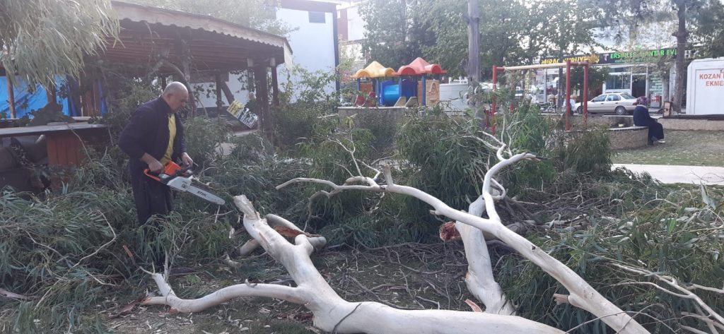 Kozan Belediyesi Park ve Bahçeler Müdürü Fatih Ateş; “İlçemizdeki fırtına ve olumsuz hava şartları nedeniyle dün Millet Bahçesinde bir ağacın büyük bir dalı fırına ile devrilmiş ve bugün ise gece meydana gelen fırtına neticesinde Fatih Anadolu Lisesi yolunda bir ağacın devrilmesi sonucunda yolun trafiğe kapandığı ihbarını alır almaz, Belediye Başkanımız Sayın Kazım Özgan’ın talimatları ile hemen tehlike arz eden bu ağaçları yerinden kaldırdık. Yine başkanımızın talimatları doğrultusunda diğer park ve kamu alanlarını gezerek inceleme yapıyoruz. Olası tehlike oluşmasına neden olabilecek devrilmiş ya da kırılmış ağaç dalları varsa gerekli tedbirlerimizi alıyoruz.” Diye konuştu.