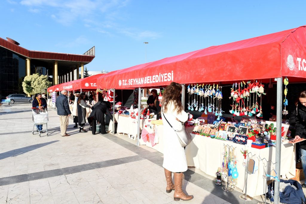 Yaşar Kemal Kültür Merkezi önündeki Seyhan Sanat Meydanı’nda kurulan “Yeni Yıl Pazarı”nda,   Seyhanlı üreten kadınların göz nuru dökerek ürettiği birbirinden güzel hediyelik yeni yıl temalı ürünler görücüye çıktı.