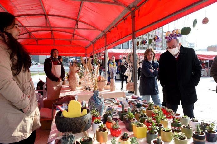 Meydanda kurulan stantlarda Kadın Dayanışma Merkezi’nde üretilen turunçgil, lavanta, spirulina ve yosun kokulu sabunlar, kiraz çiçeği ve turunçgil kolonyaları, her biri sanat eseri olan seramik ürünler ile SEYMER’lerde üretilen dekoratif ev ürünleri, yeni yıl temalı taş, seramik boyama ürünleri, dekoratif saksılarda çiçekler, çocuklar için eğlenceli armağanlar, el işi takılar halkın beğenisine sunuldu.