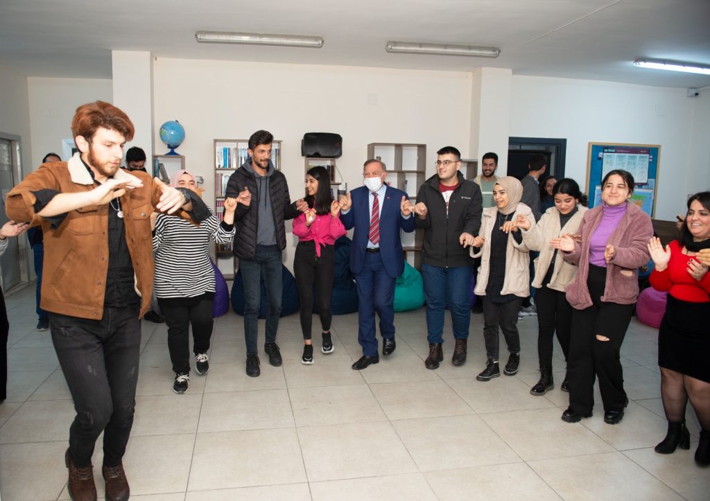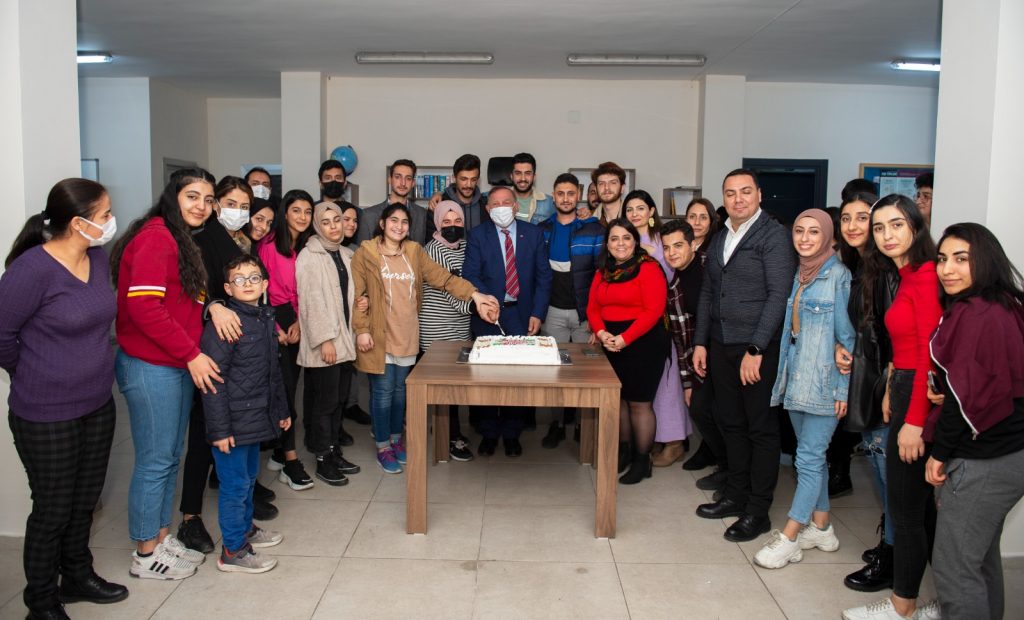 Etkinlikte Başkan Akay ve gençler yeni umutlarla yeni yıl pastasını kesti.