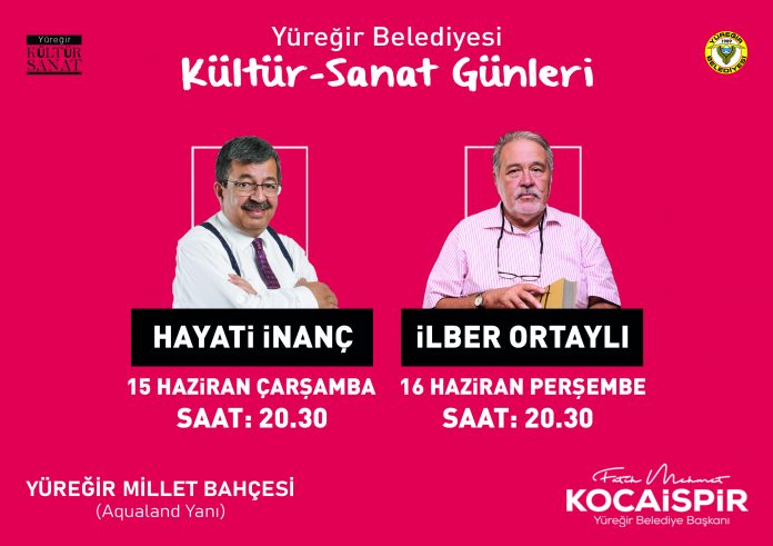 15 Haziran Çarşamba günü Yazar Hayati İnanç, 16 Haziran Perşembe günü Prof. Dr. İlber Ortaylı, Yüreğir Belediyesi Kültür Sanat Günleri söyleşilerinde Adanalılarla buluşacak.