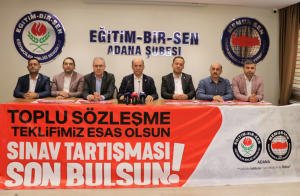 Gelinen noktada öğretmenlerimizin talep ve haklı beklentilerini karşılayacak somut bir adım atılmamış, bu belirsizlik eğitim çalışanları ve öğretmenlerimizde moral bozukluğu ve motivasyon kaybı oluşturmuştur” diyen Eğitim-Bir-Sen Adana Şube Başkanı Mehmet Sezer sendika olarak taleplerini de sıraladı;