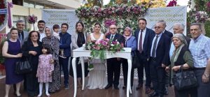 Özellikle İYİ Partili arkadaşlarının ilgi gösterdiği nikaha, yoğun ilgi ve katılım vardı. Oturacak yer kalmadığından birçok konuk ayakta nikahı takip etmek zorunda kaldı. Yeni çift, nikah salonuna gelen bütün konuklarla ilgilenmeyi de ihmal etmediler. Düğün gibi nikah oldu.
