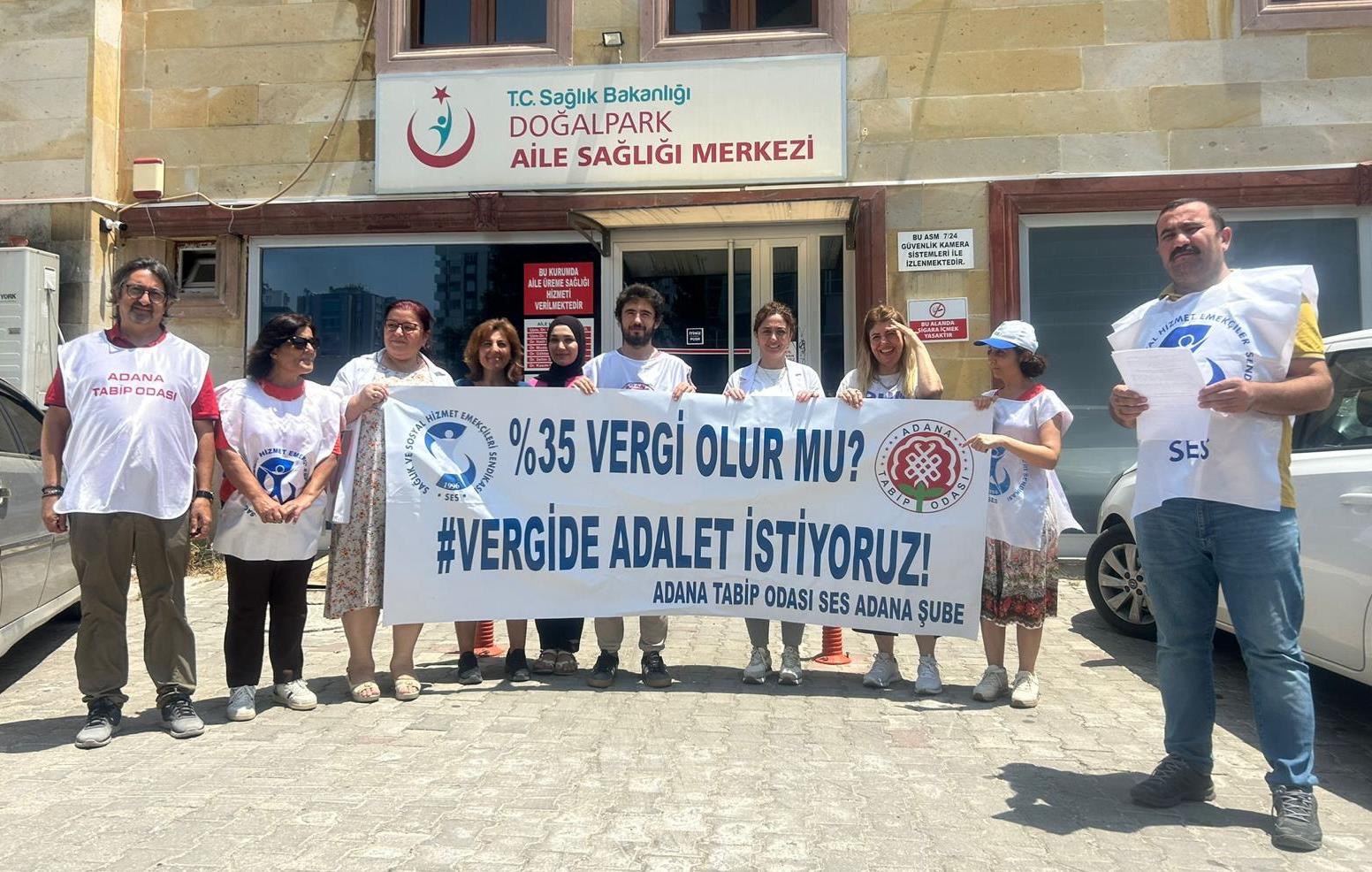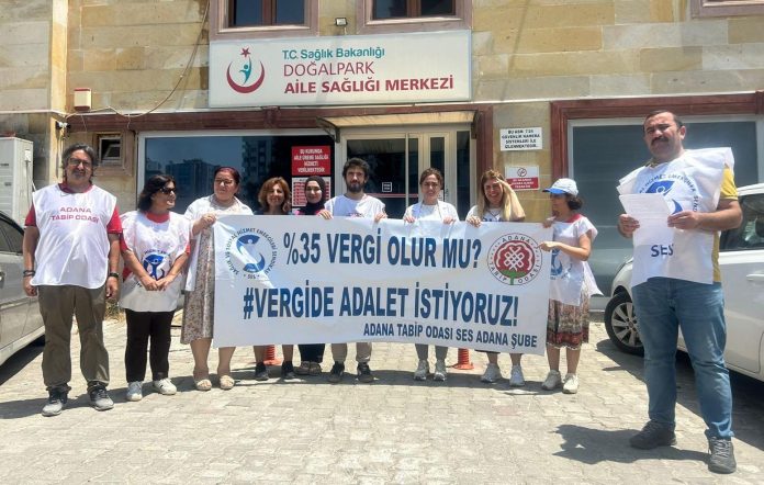 Adana Tabip Odası ile Sağlık ve Sosyal Hizmet Emekçileri Sendikasının yürüttüğü ‘Vergide Adalet İstiyoruz’ eylemi 18 Haftadır sürüyor.