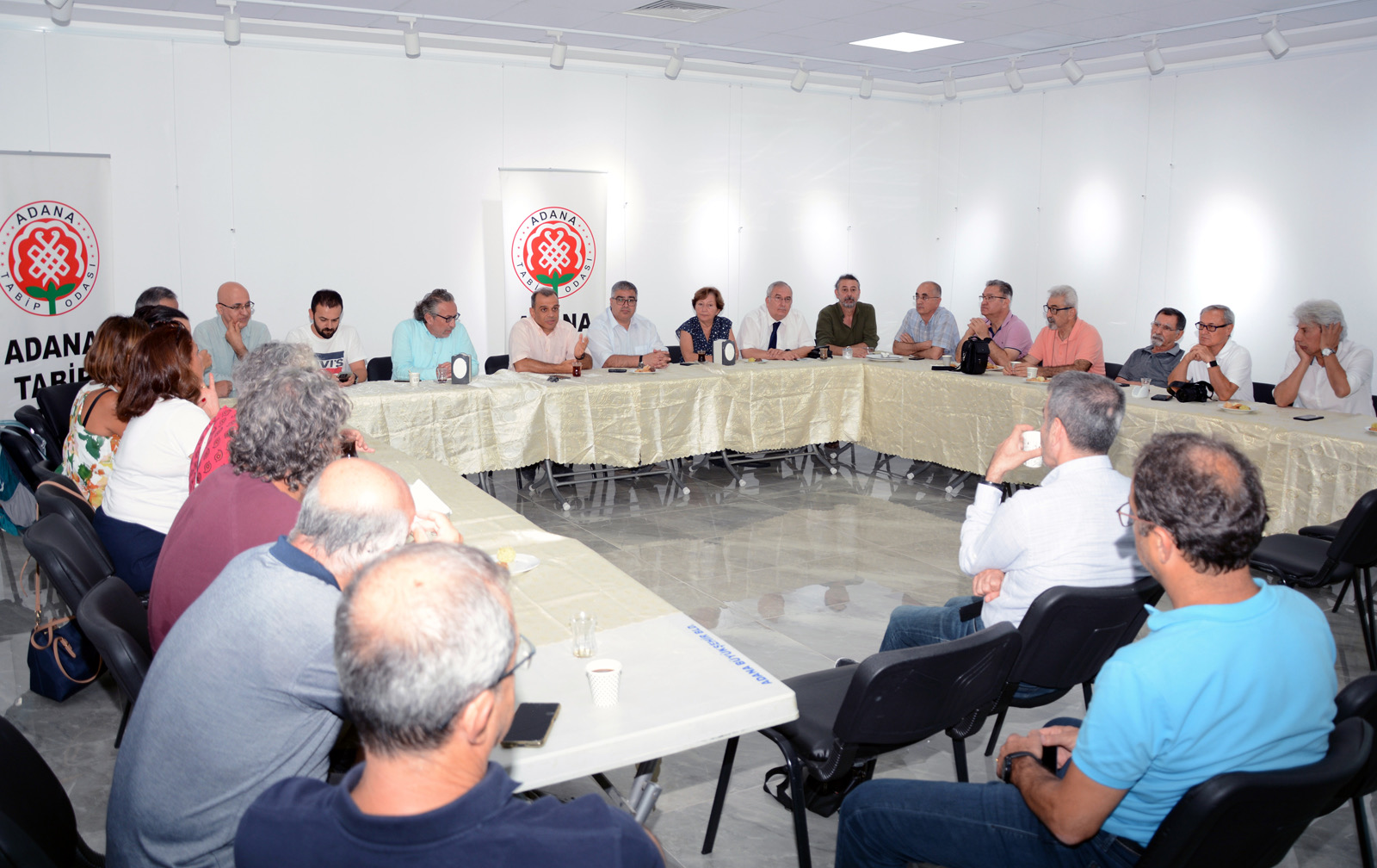 TTB 2. Başkanı Dr. Mualla Pınar Saip, Genel Sekreter Dr. Hilmi Önder Okay ile YK Üyeleri Dr. Ali Karakoç, Dr. Nilüfer Ustael, Dr. Ali Osman Karababa, Dr. Mehmet Şerif Demir, Dr. Ayşegül Ateş Tarla’nın da katıldığı ziyarette Adana Tabip Odasının 6 Şubat depreminde gösterdiği performans ve destek için hem teşekkür etmek hemde değerlendirme yapmak için Adanaya geldiklerini söyleyen TTB Başkanı Dr. Alpay Azap, yaptığı konuşmada “Ülkemiz büyük depremler yaşadı. En son Şubat depremlerini yaşadık. Türk Tabipleri Birliği olarak deprem bölgesinde ki hekim arkadaşlarımızla konuşmak, onların sorunlarını dinlemek, olabildiğince sorunların çözümü için yardımcı olabilmek ve onların görüşlerini, önerilerini alabilmek için deprem bölgesine 3 günlük bir gezi düzenledik. Adana’yla başladık. Ardından Hatay, Osmaniye, Malatya ve Adıyaman’a uğrayacağız. Sonrasında da Gaziantep ve Malatya planımız var.”