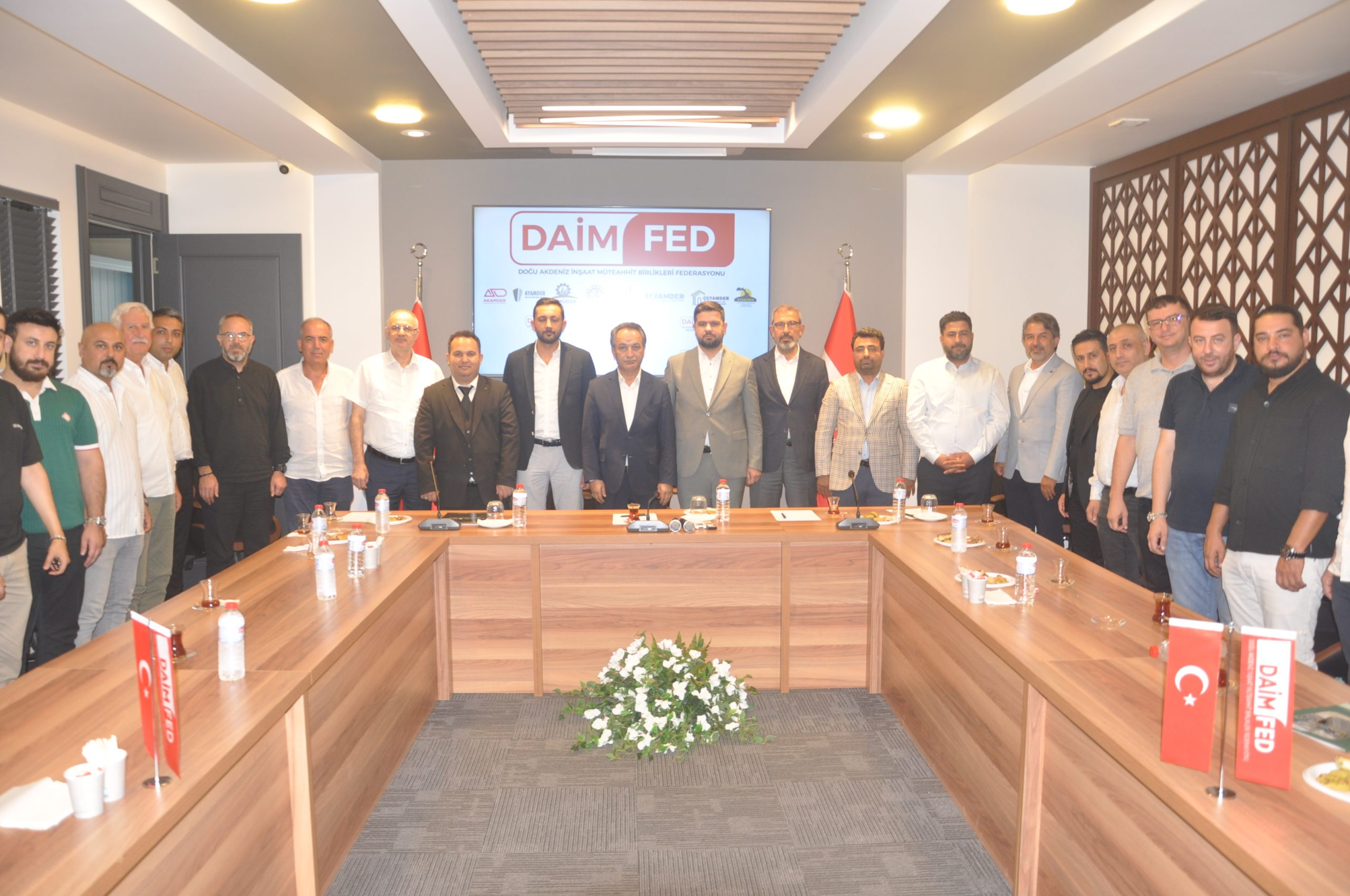 Doğu Akdeniz İnşaat Müteahhit Birlikleri Federasyonu (DAİMFED), Genel Başkanı Mustafa Karslıoğlu ve Yönetim Kurulu Üyeleri, Malatya Şube Başkanı Kadircan Esen ve beraberindeki heyet Genel Merkezde bir araya geldi. Toplantıda federasyonun proje çalışmaları hakkında görüş alışverişlerinde bulunuldu.